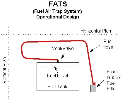 You may think “Wait, that’s why I have a rollover / check valve, so why should I care.” I’ll tell you why – because the check ball in a rollover valve will only completely stop the flow of fuel in the event of a complete rollover onto the roof. In addition, I have seen many more partial rollovers onto the driver’s side of a car than full ones. I highly recommend reading through the forum post linked above to fully understand FATS. The original diagram doesn’t appear to be linked anymore, but I found it on other posts, and I’ll include it here.