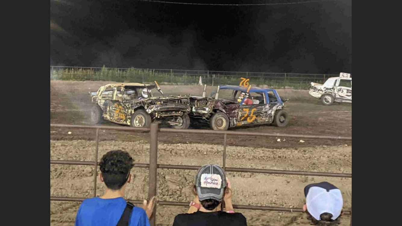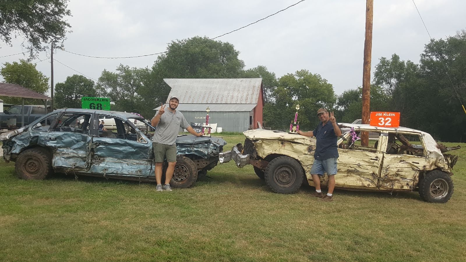 In the second derby at Oakley I had a fresh 94 vic, running the stock 4.6, and dad had an 82 Buick with a stock 350/th350 setup. For this derby there was two on two heats to start off. We were the lucky draw to drive the first heat after the fire department had spent the better part of the afternoon watering the track. Steering was abysmal, and it made for a boring heat, but we managed to outlast our competition in about 12 minutes. After the first car quit running, the other car and I got hung up (nose to nose again, doh) and with dad still driving around we won the heat. Unfortunately, my lower core support got pushed in in the process, pinching a radiator hose, and the rear on Dad’s car did metric things and plowed. We had a healthy notch on it, but did not pre-bend it, and the first shot he took was a corner shot from the other cars front bumper sitting higher than dad’s. We spent the majority of the next day working our butts off in the sun on his trunk, my core support, and all the other piddly things we found wrong with the cars to try to give us our best shot at the cup.